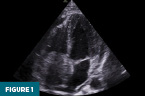 Frontal and lateral chest radiographs demonstrated a mildly prominent cardiac silhouette. Point-of-care echocardiography in the apical four-chamber view revealed an echogenic mass occupying much of the right atrium (Figure 1).