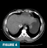 Concurrent abdominopelvic CT revealed distension of the inferior vena cava (IVC) with heterogeneous enhancement, suspicious for tumor extension into the IVC (Figures 4 and 5).