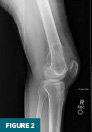 Anteroposterior and lateral radiographs of the right knee demonstrated an expansile lesion involving the lateral aspect of the distal femur. The lesion was primarily lucent and had a relatively narrow zone of transition (Figures 1 and 2). Soft tissue density involving the superior aspect of the lesion was suggestive of cortical breakthrough (Figure 1).